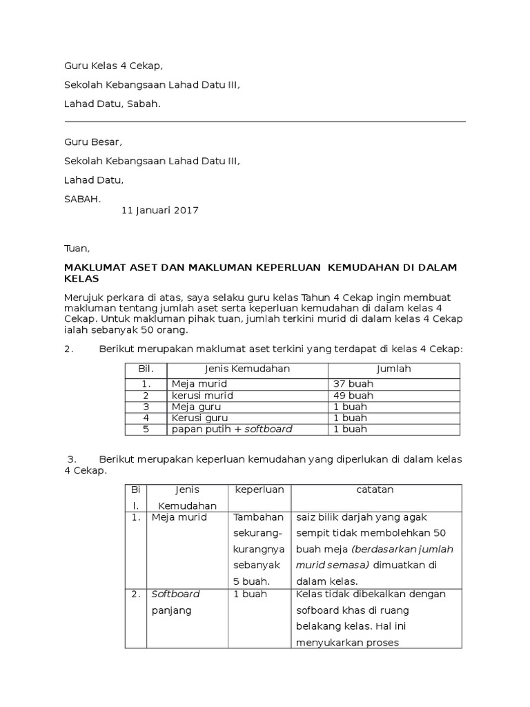Surat Aduan Kerosakan Dalam Kelas Pdf