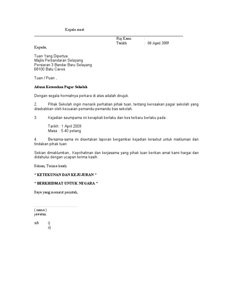 Surat Kiriman Rasmi Aduan Kerosakan Harta Benda Awam Resepi Book R Dubai Khalifa